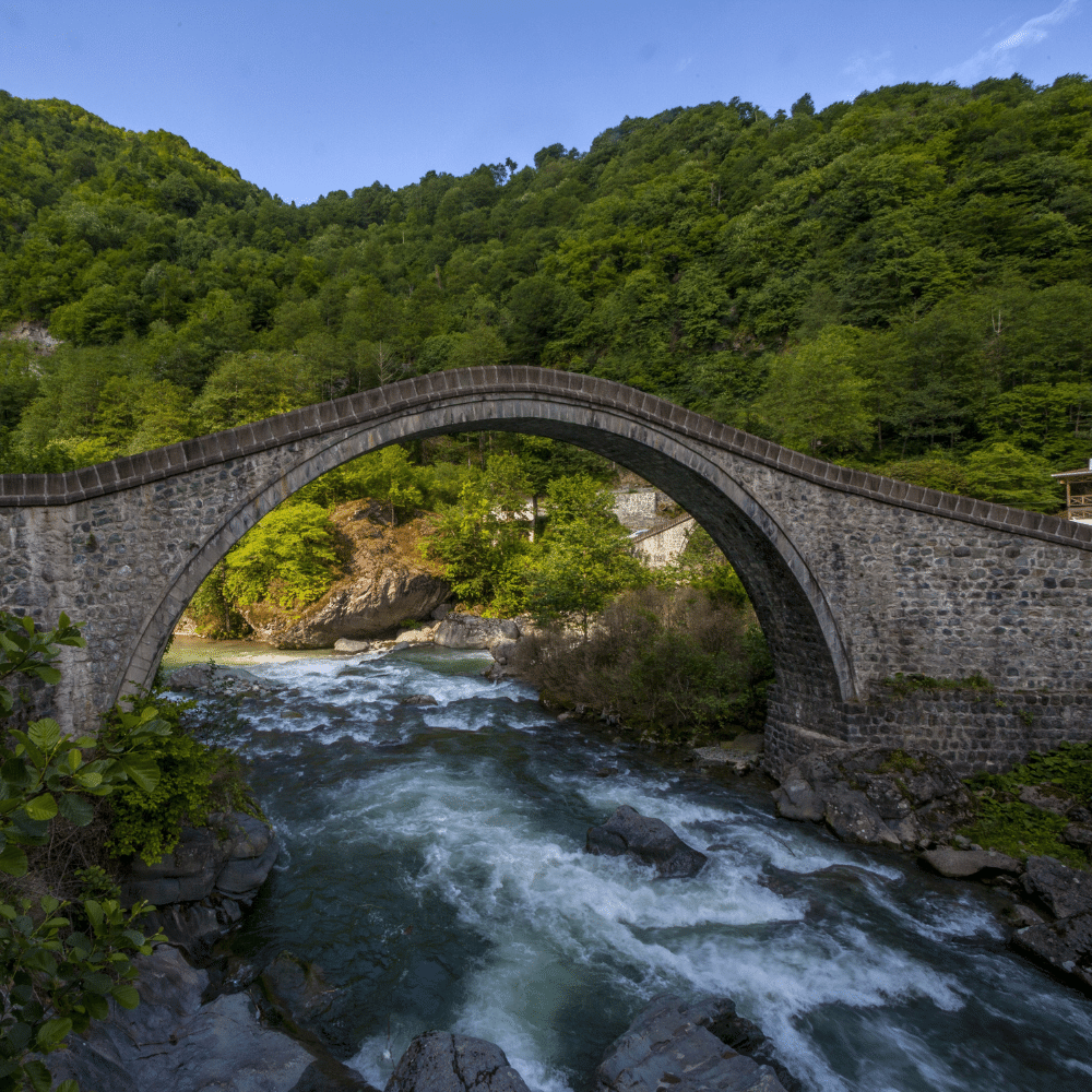 After a 15-minute rest break, we continue our way and reach the Çamlıhemşin district, famous for the unique natural beauties and plateaus of the Black Sea region. For our guests who wish, we stop for 10 minutes of shopping and taking photos next to the waterfall flowing through the center. After entering the Çat Valley from Çamlıhemşin, we pass through the Wooden and Stone Mansions along the stream, pass by the Ortan Village Goboş Bridge, and reach Şenyuva Village (Çinçiva), which hosts the Black Sea TV series. While we were sipping our coffee at Çinçiva cafe in Şenyuva Village, where movies such as Sevdaluk, Egenin Hamsisi, Yeni Gelin, Yüreğine Sor were shot; We are watching the Şenyuva Bridge (Çinçiva Bridge), one of the historical stone arch bridges of the Ottoman period. During our break in Şenyuva Village, we will not forget to take photos under the famous Sevdaluk Pension and Sevdaluk tree.
